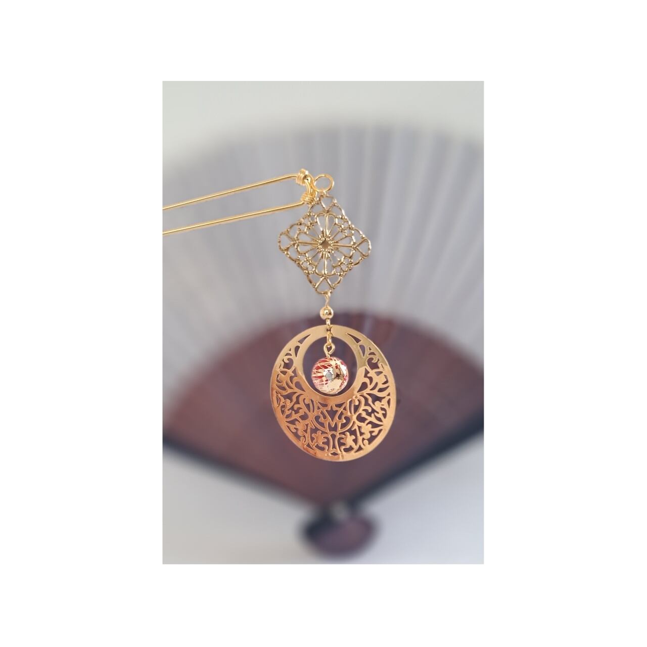 唐草ビーズが、チャームの中で揺れるかんざしです。